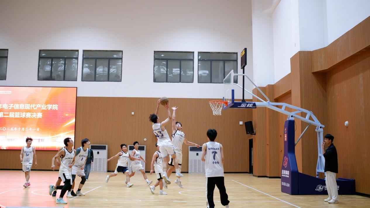 近日,电子信息现代产业学院第二届篮球赛决赛在室内篮球场举行。经多轮角逐,电子信息工程5班代表队与电子信息工程6班代表队晋级决赛,现场师生观赛热情高涨,气氛热烈。