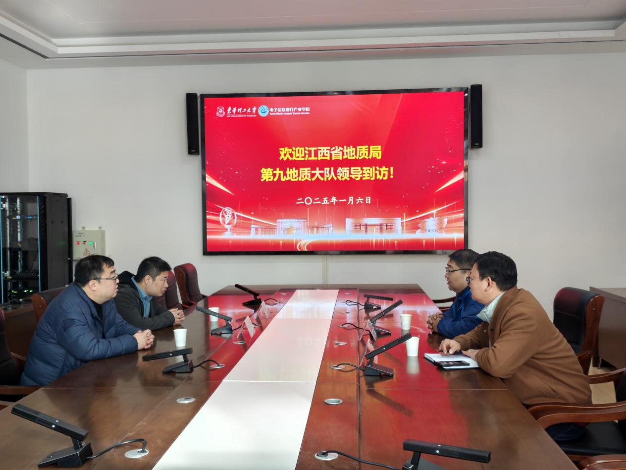 近日,江西省地质局第九地质大队地质环境调查分队党支部书记陆子亮率队赴电子信息现代产业学院进行调研交流。学院副院长马善农陪同调研。