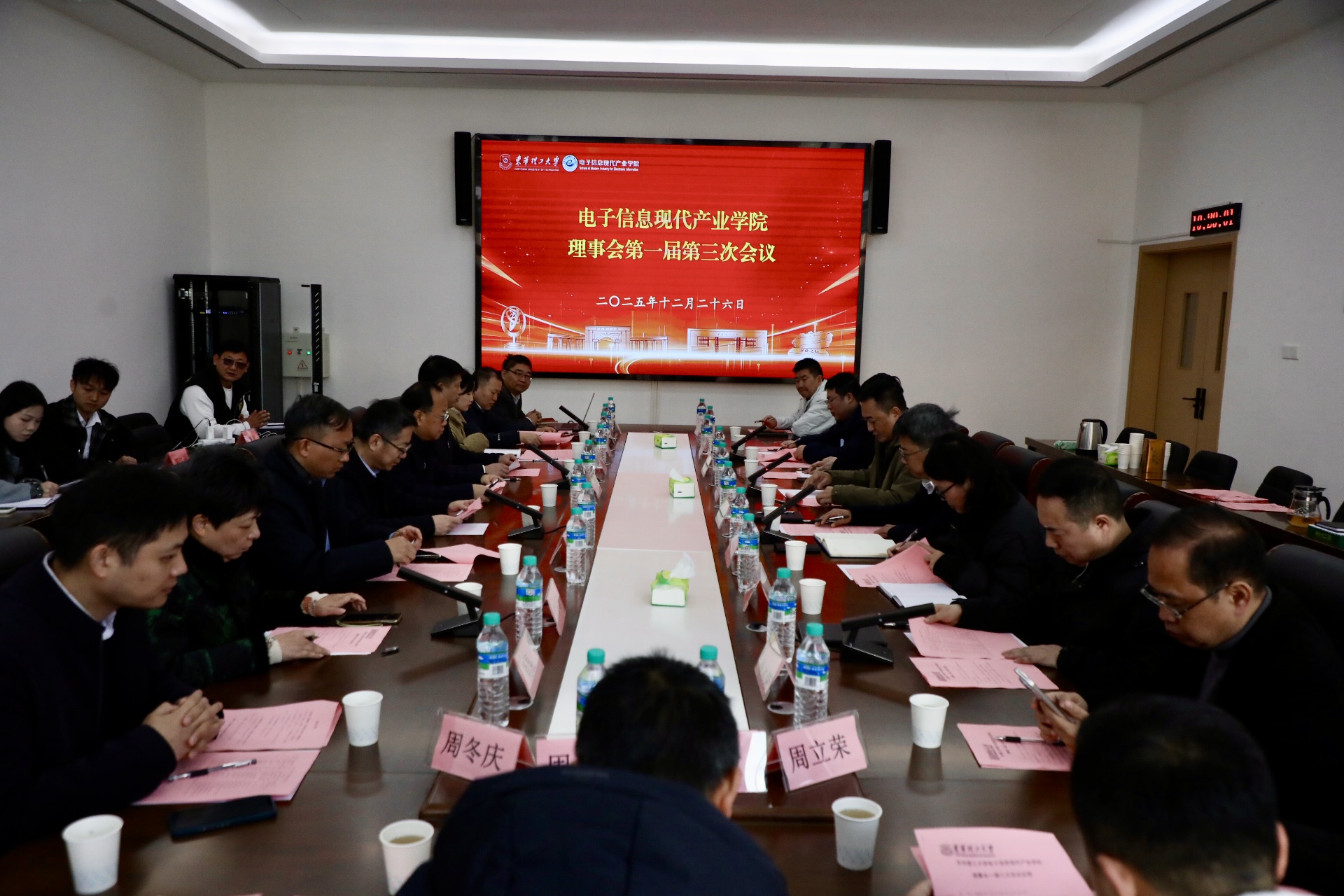 12月26日,东华理工大学电子信息现代产业学院第一届理事会暨专家委员会第三次会议在吉安举行。东华理工大学党委副书记、理事会理事长夏菲,新余学院副校长、专家委员会委员周书民,井冈山经济技术开发区党工委委员、管委会副主任胡向学出席会议。
